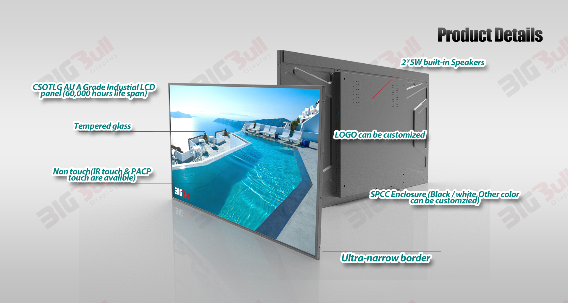 - 19.5inch Stretched LCD display with tempered glass
